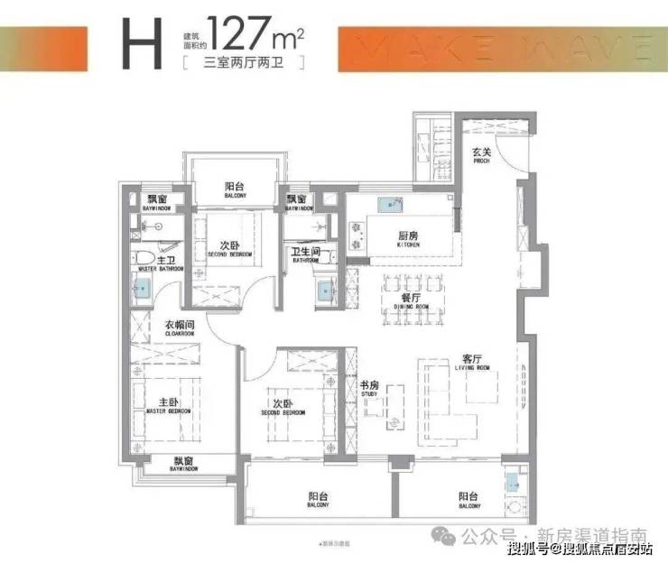 “南向双阳台+南北双飘窗”,构筑真3房户型!
