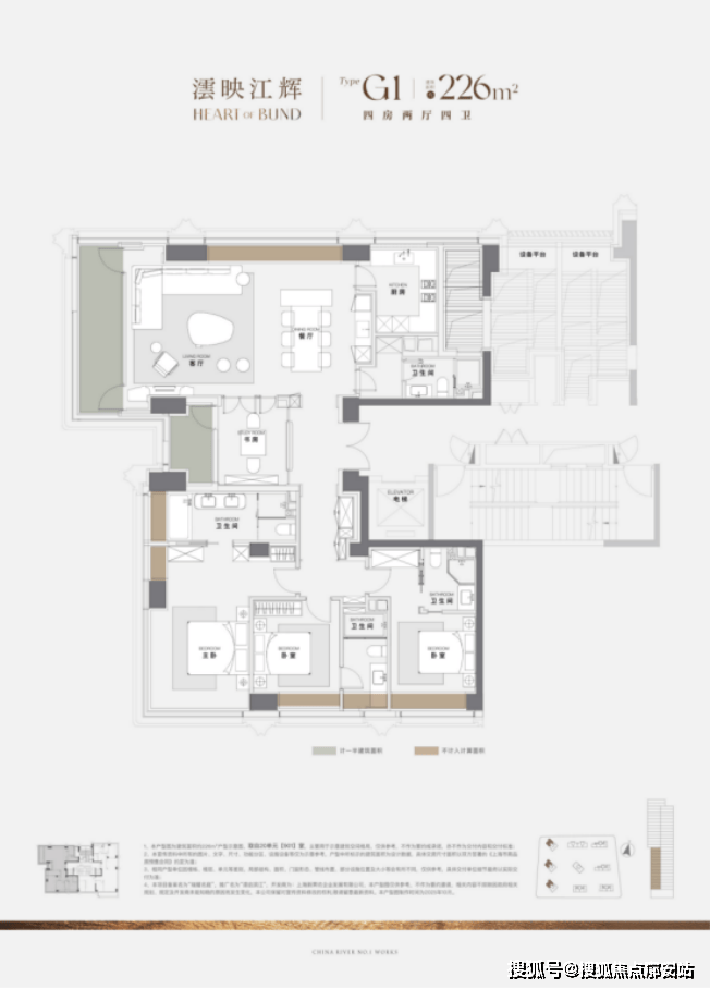 226㎡四房两厅四卫全明格局,以「南向三卧+蝴蝶灵动线」重构空间美学——三间卧室皆朝南纳光,主卧更以270°无柱转角巨幕,将江景化作流动的油画;
