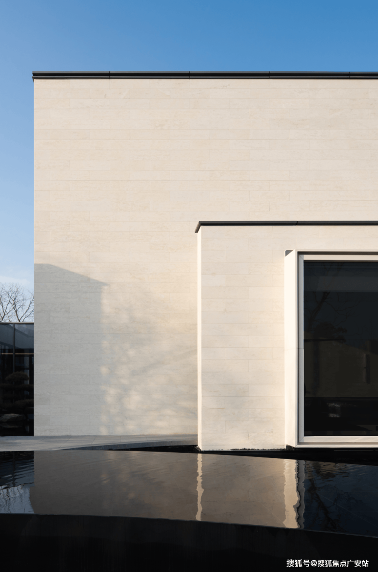 建筑以墙为纸,泼墨于树影斑驳,水光潋滟。玻璃砖取湖光天镜的镜光,波光粼粼,跃然纸上。
