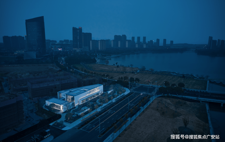 海和澜庭生活艺术馆,沿城市界面,以绸缎而落向湖而展,通过片墙的手法形成错落的建筑体块,将城市界面景观渗透进入室内空间。建筑线条强烈且富有张力,用纯粹的设计语言替代传统意义的建筑立面,面向城市界面展现出其丰富的内部空间。
