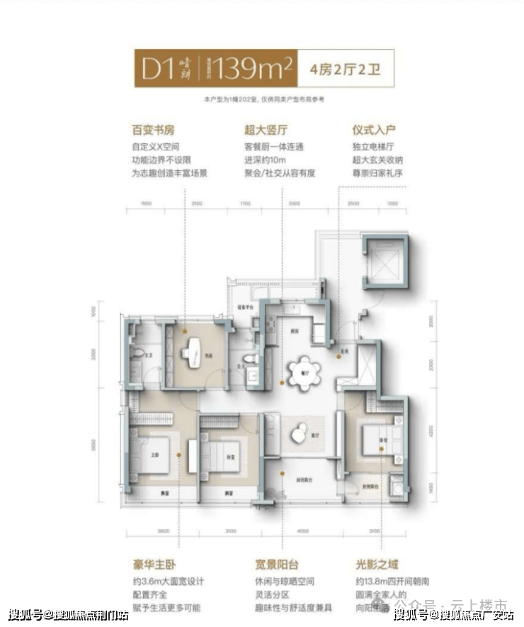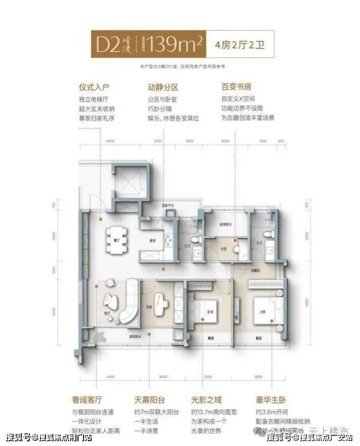 T3 大高户型则胜在 “灵动空间”,书房白天是阅读角,晚上可变童趣天地,收纳随功能切换而调整。约 13.8 米南向四开间让阳光满屋,客餐厨一体化设计进深达 10 米,聚会娱乐从容自在。主卧约 3.6 米宽敞面宽,精致衣帽间与独立卫浴俱全,满足改善家庭对 “奢享” 的需求。