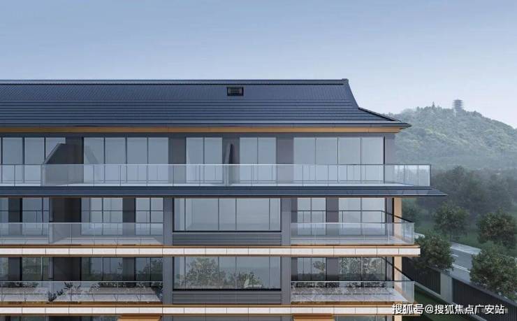颂香望庐的建筑外立面沿袭传统宋式美学,采用四面铝板+三玻两腔玻璃立面,搭配爱马仕灰和蓝眼睛石材,古典但不失现代质感。