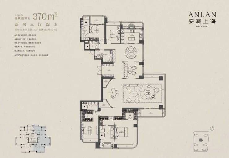 约365㎡4+1房三厅四卫(楼王):270°环幕,尺度阔绰;