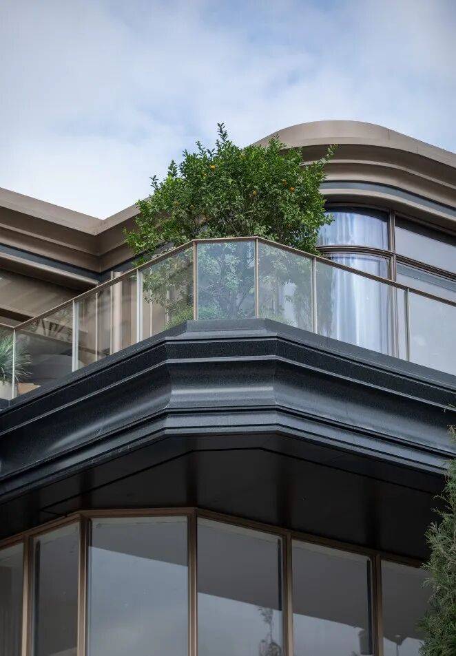 安澜上海作为上海核心区罕有的大体量纯粹豪宅圈层场域,项目立面灵感源自名表马耳他十字工艺,采用名贵石材+金属铝板,以东方圆融思想整合以雕刻的石材锻打的金属,呈现出独特的人居地标美学。
