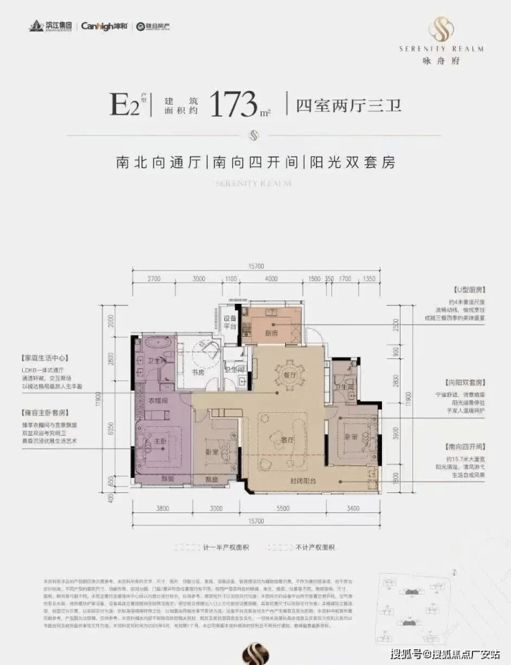 采光拉满:南向四开间超15.7米,双套房均带飘窗,阳光“追着人走”;