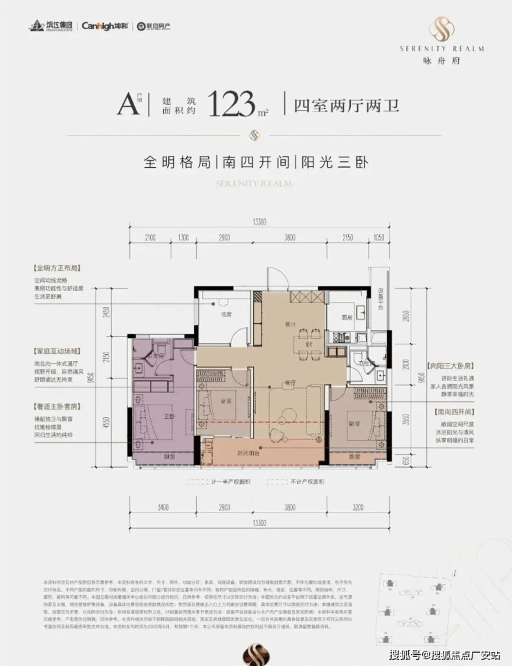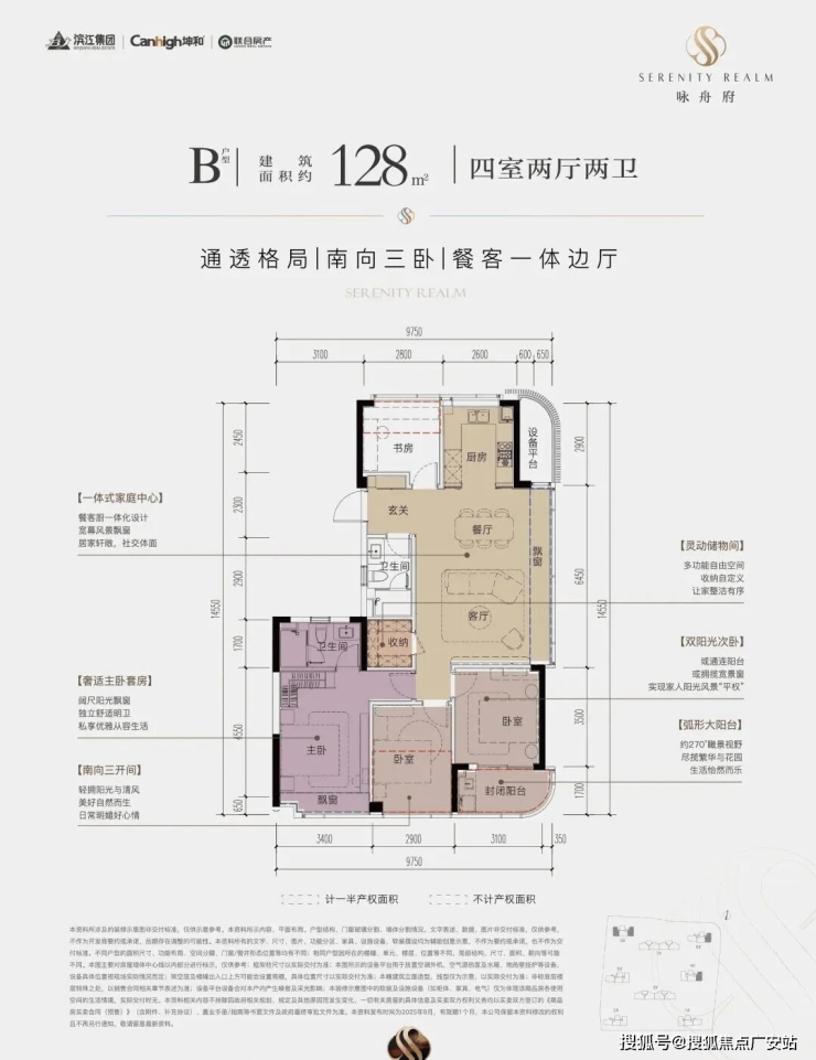 核心标签:南向四开间+阳光双套房+270°弧形飘窗