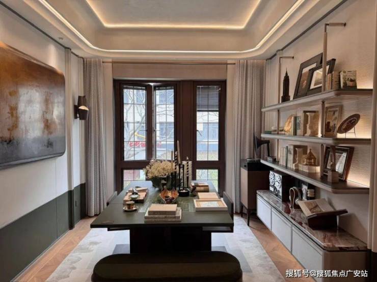 风貌别墅延续了上海石库门风格。青砖黛瓦,红色腰线,南向面宽最大的大概约15米左右。从一扇门、一扇窗中保留和创新,同时区别“里弄式”别墅的小格局、少采光、多浪费;空间布局灵活,满足不同高阶家庭生活需求,递呈出静安苏河畔难得的海派浓荫别墅。