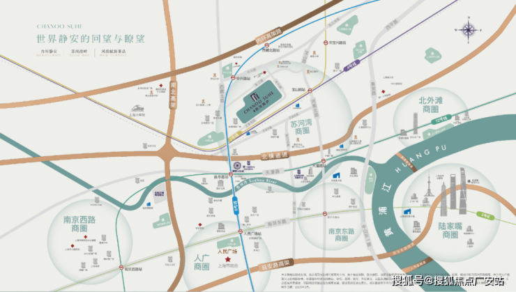 国际滨核心:位于上海静安内环内、苏河湾核心板块,一江一河战略核心区,距苏州河约 300 米,近 3/4/8 号线三轨交汇