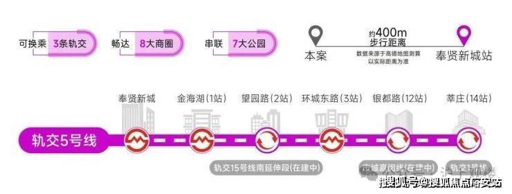 项目地处奉贤新城,属于奉贤新城核心位置,与5号线奉贤新城直线距离站约300米;