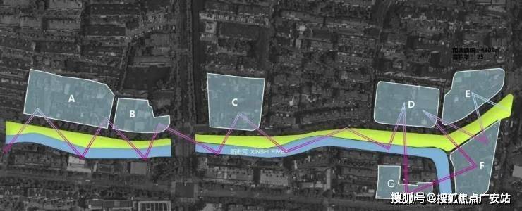 设计中将7个独立的地块与滨水空间相结合,通过对商业、绿化、广场界面的有机穿插、整合成为一个与景观河道交相辉映、有节奏的公共长廊,提升滨水区域的环境品质。