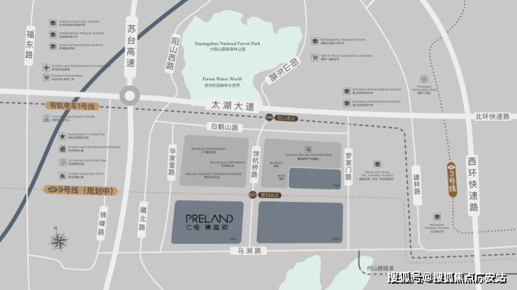 同时,项目周边生态环境优越,临近大阳山国家森林公园这一苏州"城市绿肺",以及苏州乐园水上世界等生态资源,是生态与科技融合的理想之地。