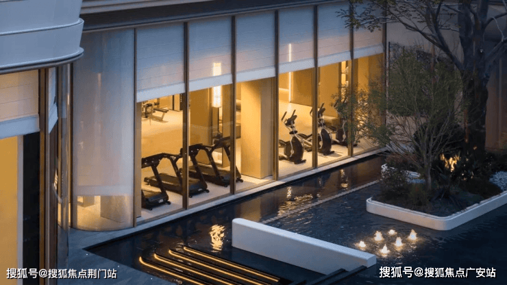 再看约1200方下沉庭院,叠水成瀑,区别于市面上大部分楼盘的“坑洞感”,形成上下两个平行空间的双层滨水度假系统,一看就很赞。