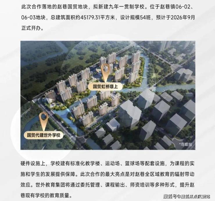 国贸为政府代建两所9年一贯制学校(小学+初中),紧邻项目西侧,一路之隔