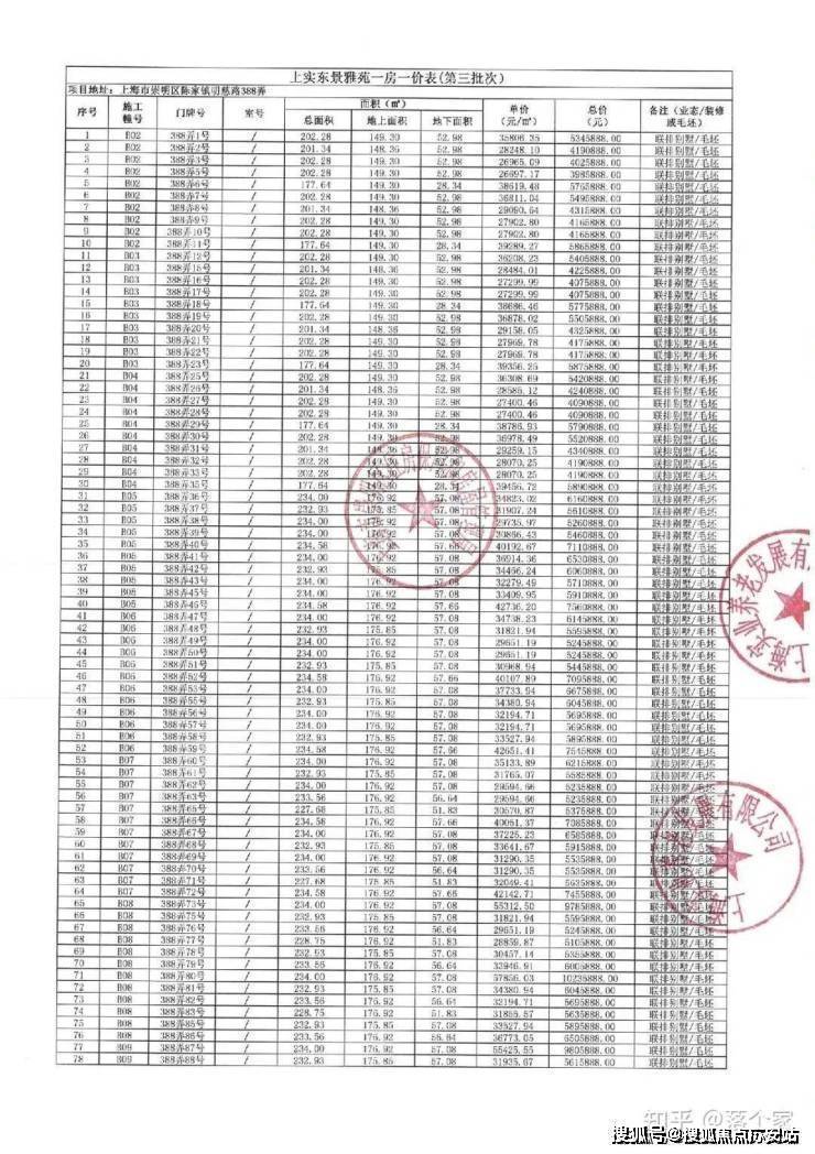 一房一价表发布