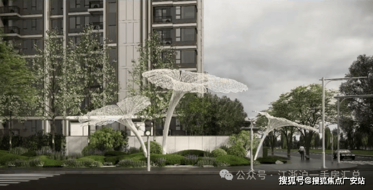 连廊绿化:以奉贤“公园城市”的理念为原点,结合街角绿化与单元门屋顶景观,创新打造立体的景观界面,使连廊成为一道绿色的风景。