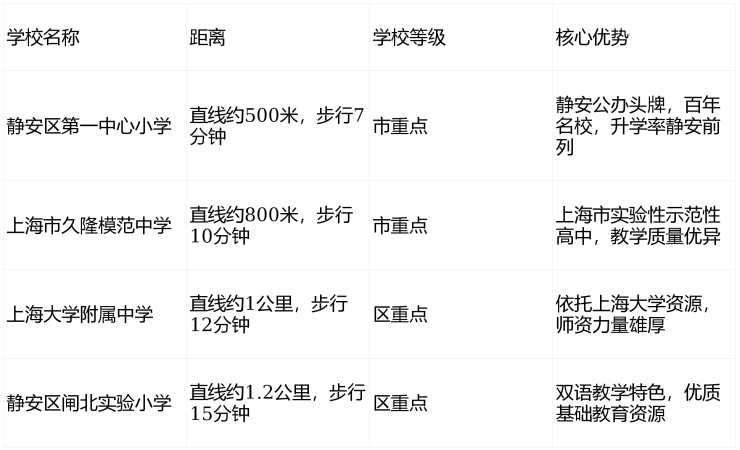 配套极为成熟:步行10分钟可达万象天地、静安大悦城等高端商业体,华山医院北院等三甲医疗环绕,生活便捷