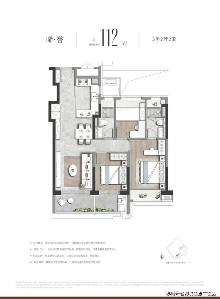 设计亮点:南北通透,短进深大面宽,层高3.0-3.3米,独立电梯厅设计,私密性好,外立面采用干挂石材+铝板+三层中空玻璃,隔音隔热效果佳