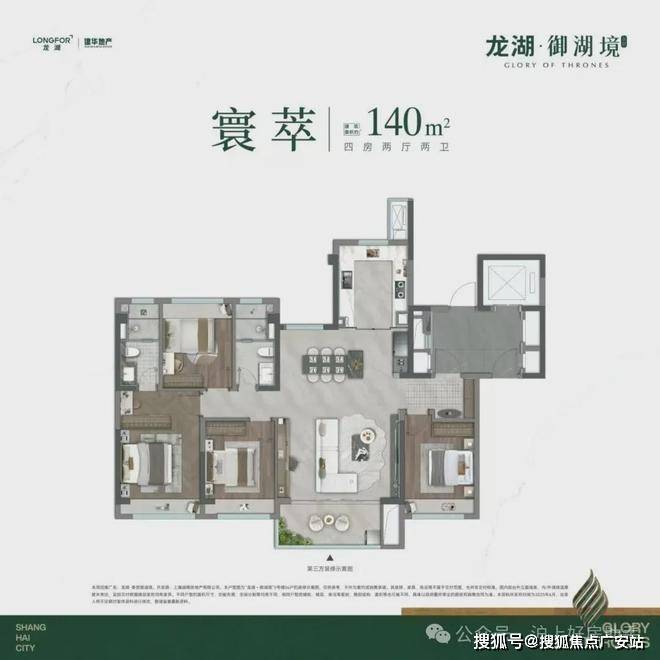 约 140 ㎡超配四房洋房,奉贤龙湖御湖境售楼处电话☎:400-9692-958【预约☎】奢阔双厅南北通透,还可改造成约8m巨幕宽厅,
