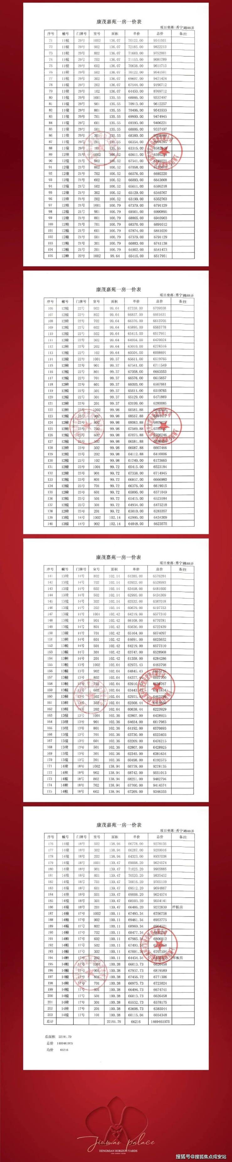 张江金茂府项目一房一价表▼