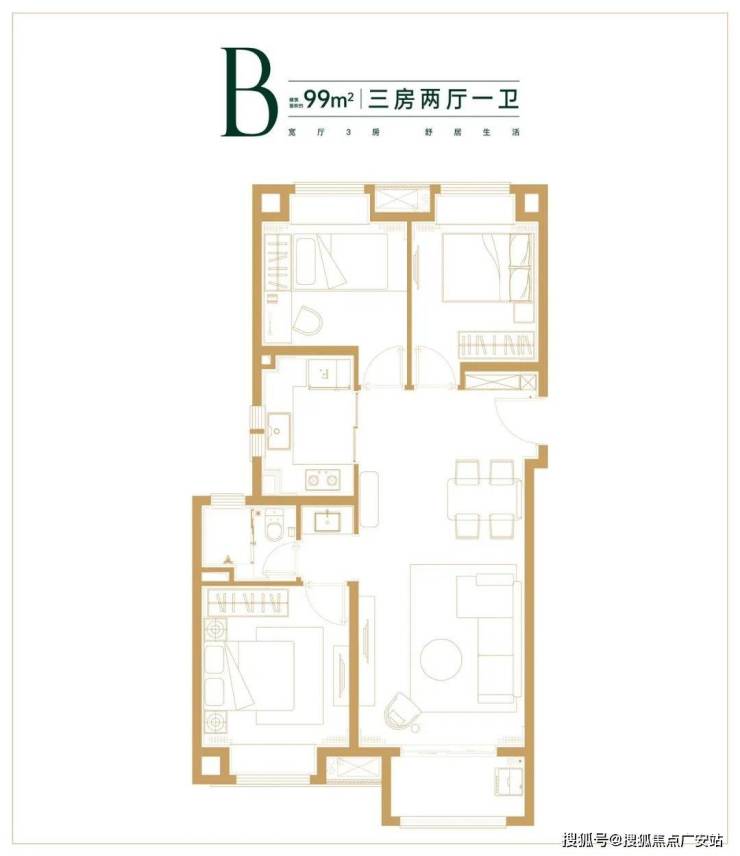 约99㎡3房2厅1卫样板间照: