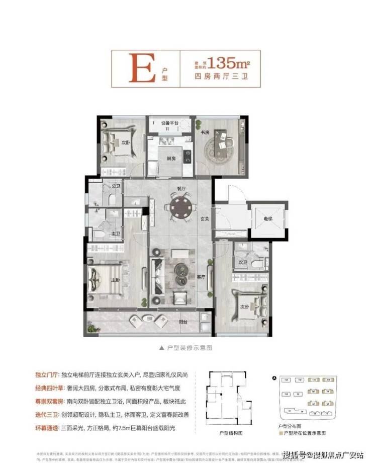 <臻贵> 祗此 140㎡内双套房:得房率超83%,带来超乎想象的尺度感,富春罕见,其中140㎡内户型,“1梯入户+2套房+3卫+大4房”尊崇设计,赶超市场165㎡