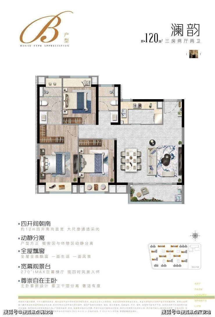 建面约122㎡ 三房两厅两卫(边套)——景观标杆,视野绝佳