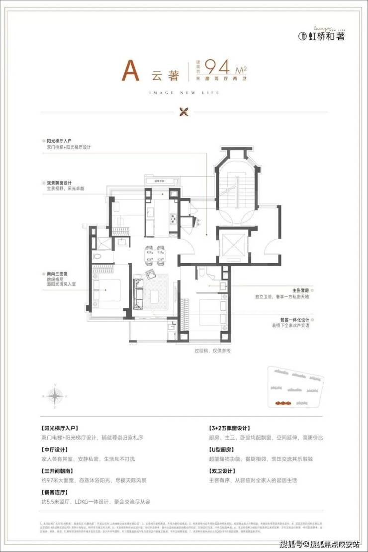 LDKB客餐厨阳台一体化设计,整个南向三开间面宽拉伸到约9.7米,升维更轩阔的公区会客厅。飞机户型的空间排布,空间充裕但不浪费,将每一平米更大化利用。