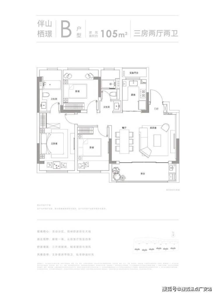 户型面积:约105㎡3房2卫、约148㎡4房2卫