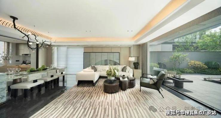 一层是会客区,超10米南向全景面宽,将窗外景观更大化引入室内。
