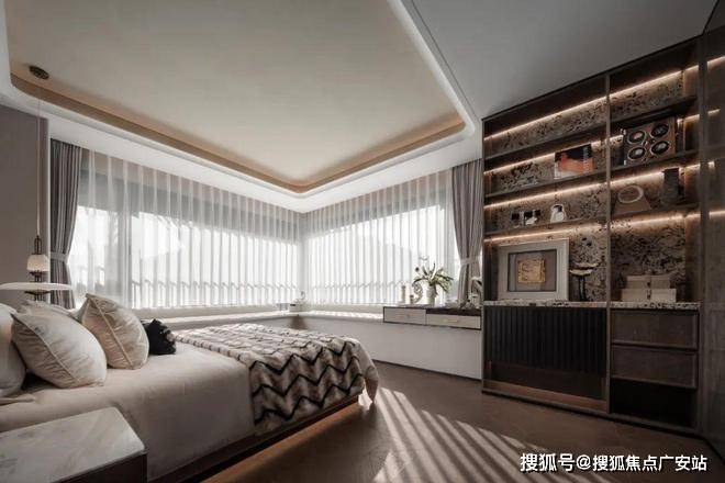 在传统的四房领域,2房朝北几乎是逃不掉的问题,但在招商中旅·观境,做到了三间卧室朝南,并且主卧拥有一个约270度的主卧无柱转角飘窗。
