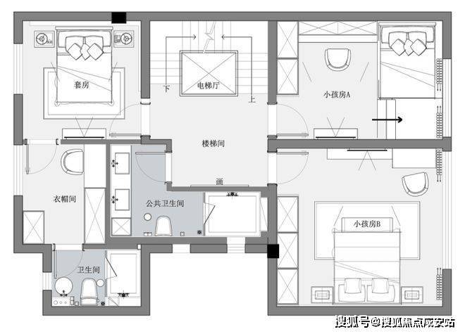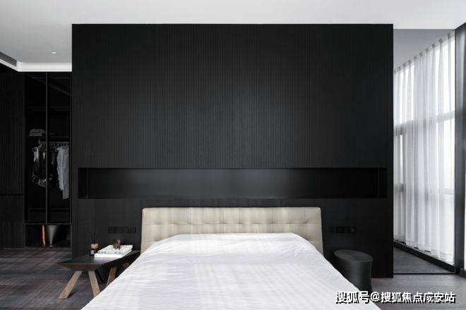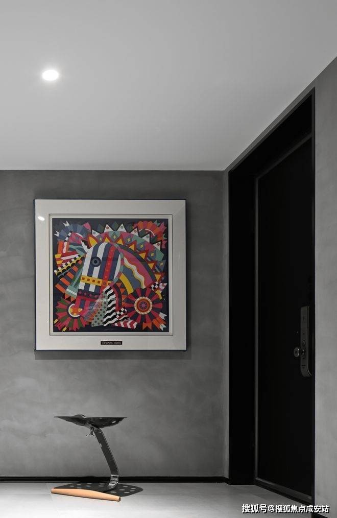私密场域依旧保持静谧,黑白色基础上搭配了更多的色彩,例如深棕、浅紫等,艺术品的衬托深邃迷人,热络了家的氛围。