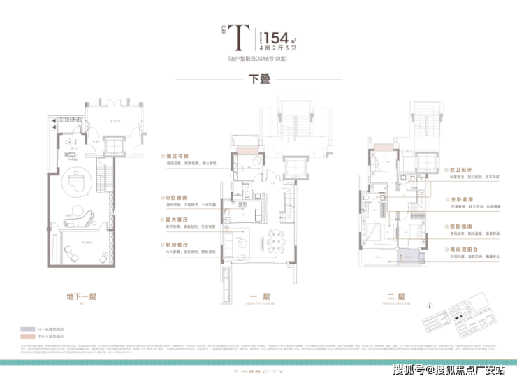 目前市面上常规叠墅,常因单层面积局促导致居住体验受限,往往刚迈开步便需上下楼梯。相比之下,时代之城下叠产品单层空间舒展的布局真正诠释了改善型住宅的精髓!