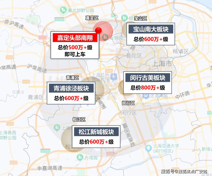 青浦徐泾,总价约600万级区域;宝山南大,总价约600万级区域;松江新城,总价约600万级区域;闵行古美,总价约800万级区域......