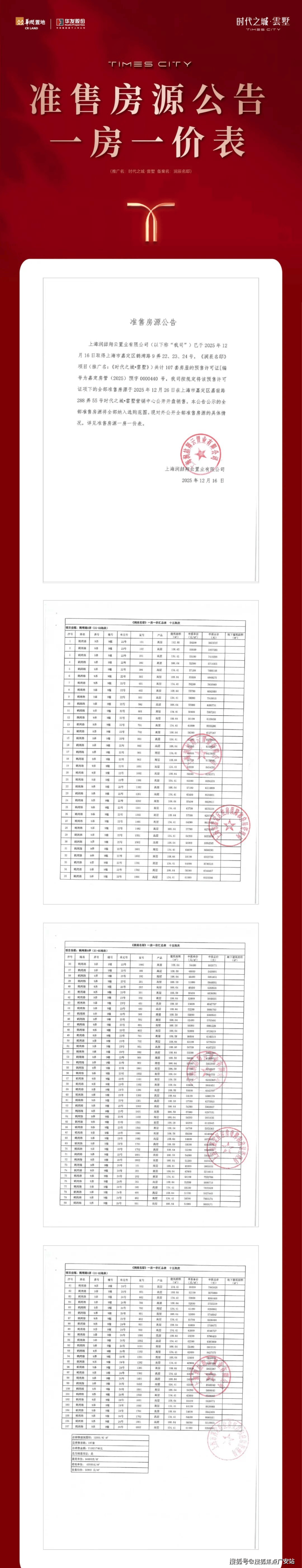 项目参数详细内容项目名称华润华发时代之城(备案名:润辰名邸)开发商上海润瓴房地产开发有限公司(华润置地+华发股份合资,双央企)产权年限70年住宅产权项目地址上海市嘉定区嘉前路288号(鹤槎路与嘉前路交汇处)区域位置南翔云翔片区核心,大虹桥北向拓展带,南翔3.0升级核心区开盘时间七批次:2025年12月21日开盘,推出251套房源最新加推:2025年12月压轴批次,107套高层交房时间预计2026年12月31日统一交付在售状态在售,主推108-135㎡高层/小高层、158-170㎡叠墅均价备案均价约5.79-5.85万元/㎡(房地联动价5.85万/㎡)总价区间约450-1600万元/套(高层约450万起,叠墅约1170万起)物业费高层/小高层3.9元/㎡/月,叠墅5.5元/㎡/月(华润物业+华发物业联合管理,一级资质)物业公司华润万象生活+华发物业服务集团联合管理认购信息认购金约80万元,一房一价以售楼处为准