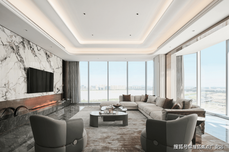 全球前50位顶尖设计师之一,连续三次荣膺室内设计奥斯卡奖室内设计上,采用LDK一体化设计,带来极具阔正的空间尺度,并以大面米灰、暖灰为主基调,营造出高级优雅的氛围感,同时通过吊灯、艺术玻璃、酒柜等软装艺术作点缀,将艺术与生活融合,简奢中透出时尚前卫,营造出私密、温暖、现代化、国际化及独特的鼎级舒居体验。