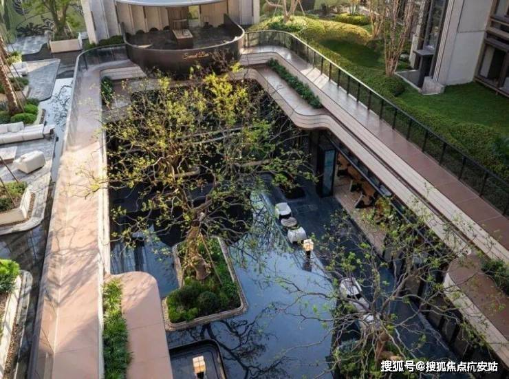 实景呈现的岛屿水院,作为保利天奕五座全球大师花园之一,在银海枣树阵、下沉式庭院、镜面池畔卡座的呼应中,成为未来居者沉浸自然的惬意之地。温柔闲适的落日廊吧,犹如身处海岛之畔,感受蓝调时刻的优雅情调。