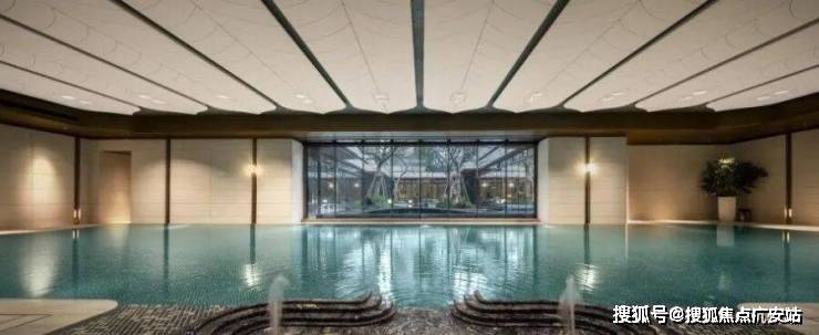 恒温泳池:第一,采用了景德镇烧制的陶瓷马赛克,独特的釉面色彩由景德镇老师傅手工浇筑而成,充满人文艺术底蕴;第二,羽毛天花造型,由600余件铝板打造,表面采用了仿贝壳纹的艺术漆处理,带来松弛度假感;第三,不仅配置了约25m×10m的4道泳池,还采用了奥运会同款空调除湿系统,彰显高档品质细节!