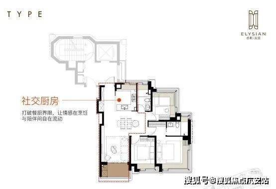 2.social厨房设计,开放式厨房水槽区转向餐厅一侧,杜绝消极空间让室内轻松连贯,也让情感交流、家庭互动在无界限。