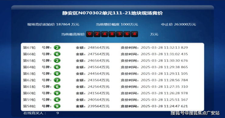 3月28日,上海2025年第三批次土拍,大华集团以总价24.85亿竞得静安大宁111-21地块,溢价率32.31%,折合楼板价92659元/㎡。装修标准不小于5000元/㎡。