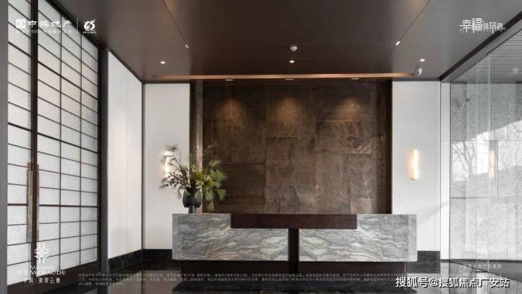 如果你来参观,首先映入眼帘的是约37米延展面的府院式大门,大面的prada绿奢石处理,主墙面浅灰色石材搭配深灰色金属条勾勒,各类石材组合,上方悬挂约4米高星空雨棚,光与影的跃动之下,尊贵的归家体验。