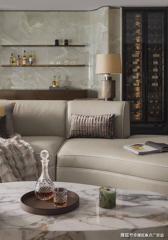 墙面大量运用特色蜥蜴皮、丝质面料以强调卓越品质,并通过夹丝玻璃实现虚实结合,营造一种隔而不断的朦胧美,自然优雅的气息弥漫而出,包容、随性的生活理念也在尽情蔓延。