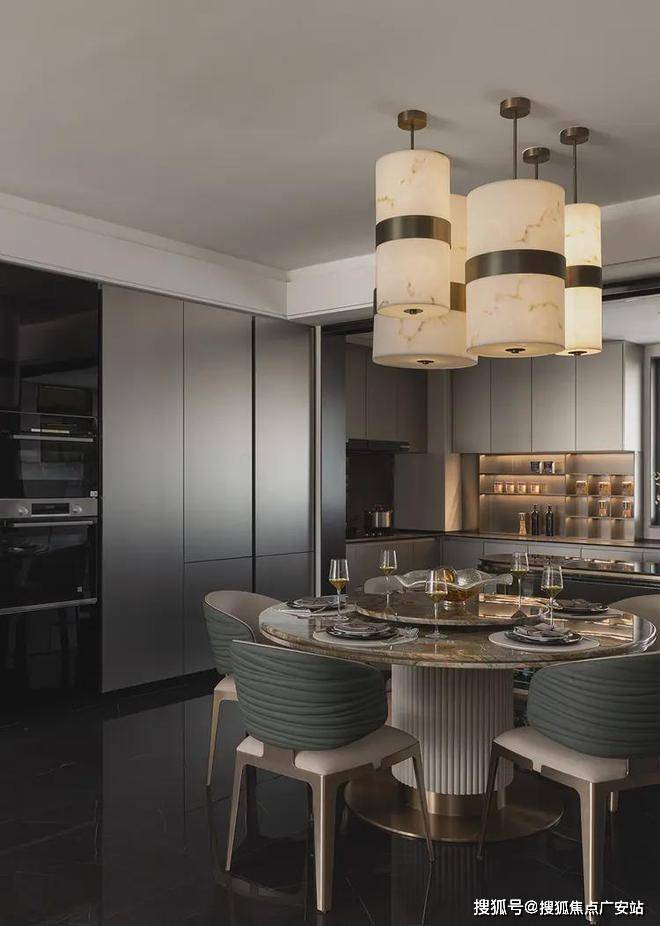 艾未设计着重亲子、瞰景、会友、聚餐等场景的营造。用餐区作为客厅与厨房的链接,以圆弧元素打造,有效延展了空间功能与互动效果,也赋予了灵活的居家动线。