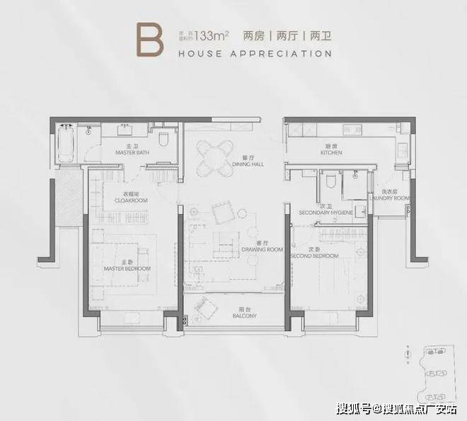 建面约133㎡ 2房2厅2卫▼