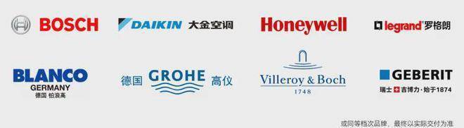 深研国际高净值人群生活方式与空间美学,采用国际一线精装品牌。采用大金中央空调,菲斯曼地暖,博世BOSCH油烟机、燃气灶、洗碗机、蒸烤一体机,霍尼韦尔新风系统、直饮水,厨房铂浪高水槽、龙头,入户有松下三合一智能门锁,罗格朗可视对讲系统,高仪龙头花洒,唯宝挂壁式马桶,吉博力静音同层排水系统等,细琢品质与细节,匠心勾勒美好生活,让家经得起时间的淬炼