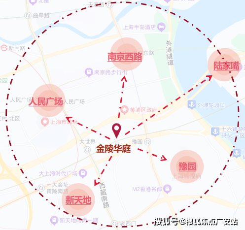 2公里内括淮海路、新天地、人民广场、外滩、陆家嘴等城市级CBD。