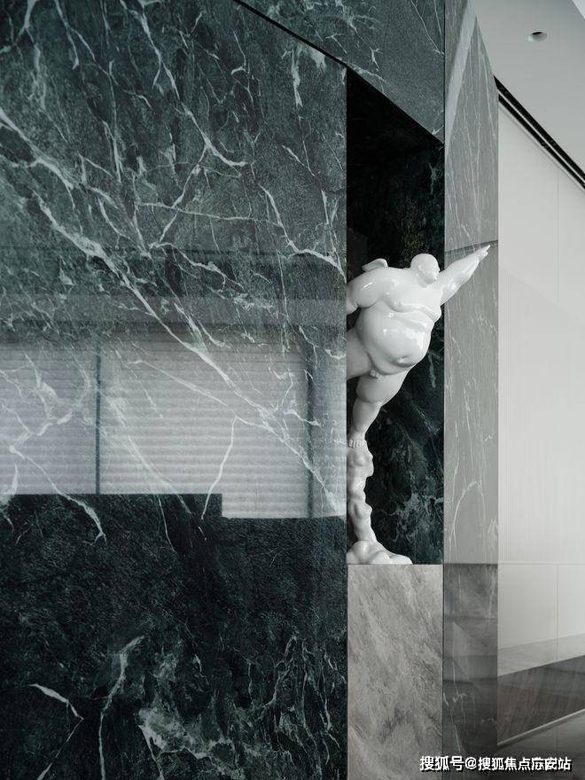 上海静安翡丽铂悦售楼处电话➡:400-8657-114(售楼中心电话)静安翡丽铂悦官方电话➡:400-8657-114(预约看房电话)玄关处的大花白大理石端景台完美融入场景,半圆弧线条与美式竖条纹墙面和谐共生。由设计师和业主夫妻三人共同创作的装饰画,灵感来源英国抽象艺术家杰森·马丁的画作,厚重而又细腻的纹理为空间注入艺术灵魂,克莱因蓝的点缀为整个空间增添一抹亮色。