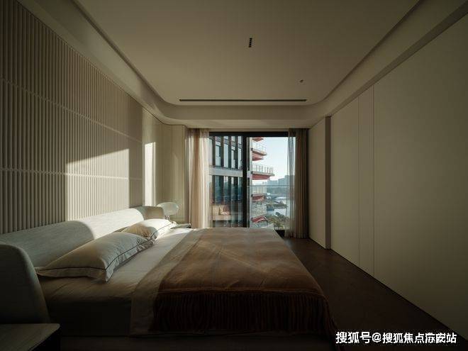 上海静安翡丽铂悦售楼处电话➡:400-8657-114(售楼中心电话)静安翡丽铂悦官方电话➡:400-8657-114(预约看房电话)简单的设计不因摒弃浮华的装饰而失色,清晰分明的弧形线条与极少的家居陈列在主卧套间内不由得被放大了细节。床头背景墙的竖纹与玄关、客厅墙面遥相呼应,美式元素在细节中巧妙展现。