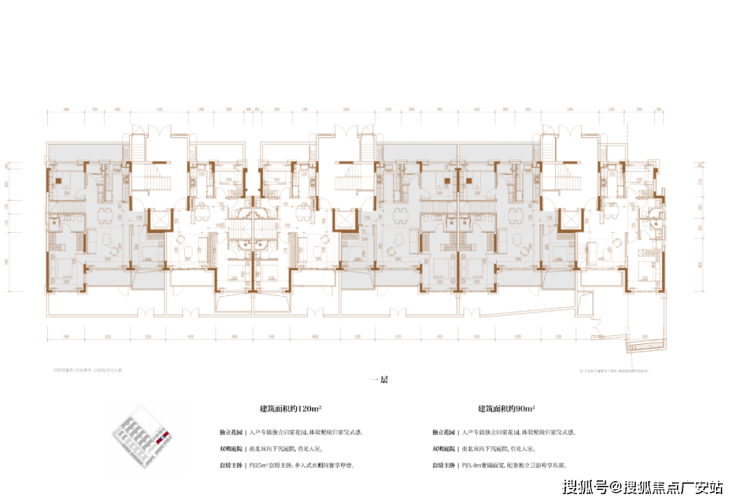 建面约120㎡3房2厅2卫/90㎡2房2厅2卫(一层下叠)