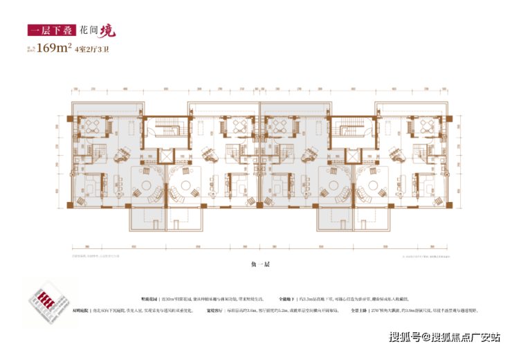 建面约169㎡4房2厅3卫(一层下叠)