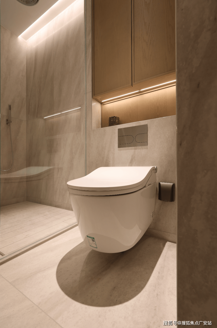 主卫淋浴花洒采用了德国当代Dornbracht,并做了别具一格的嵌入式设计。花洒的底面与吊顶齐平,视觉与空间感更好。